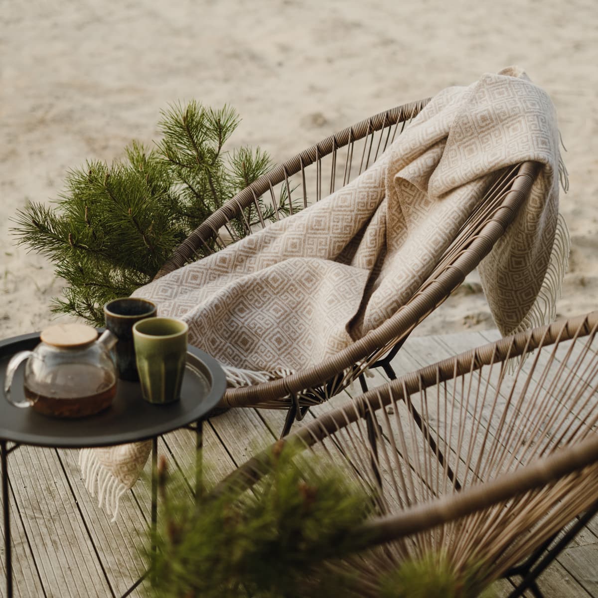 The Sirtaki Throw is made from pure natural fibres crafted with care and a feel for texture. Every thread adds to the quiet sense of luxury that only real wool can offer. It is a simple pleasure that quickly becomes part of everyday comfort.